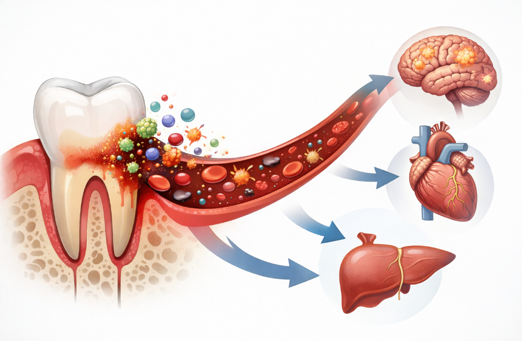 잇몸병의 핵심은 염증입니다. 치아 주변에 쌓인 세균이 잇몸을 자극하면 염증 반응이 발생하게 됩니다. 문제는 이 염증이 잇몸에만 머무르지 않는다는 점입니다. 세균이나 염증 매개 물질이 혈류를 통해 온몸으로 퍼질 수 있다는 점이 전문가들 사이에서 꾸준히 언급되고 있습니다.